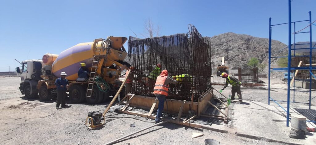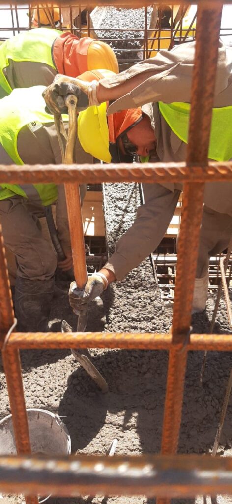 Desde nuestro equipo, como empresa subcontratada de Benito Roggio e Hijos SA, trabajamos en las cámaras adjuntas al Acueducto Gran Tulum – ramal Ullum y ramal Sierras Azules. Contamos con dos grupos de trabajo, uno especializado en armado de hierros, capacitado para leer e interpretar planos de estructuras y realizar los armados de los canastos; y un segundo equipo, especializado en la realización de los pozos y hormigonado de los mismos.