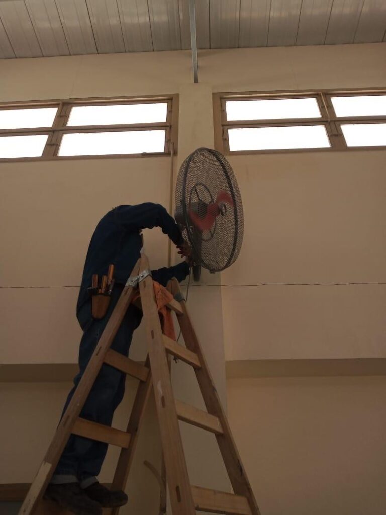 Durante el periodo estival realizamos el mantenimiento de cinco instituciones públicas. Las tareas consistieron en limpieza de tanques, techos, refuncionalización de ventiladores, redes eléctricas, plafones, arreglo de cerraduras, baños, pintura de pizarrones para la puesta en marcha del periodo lectivo 2024.